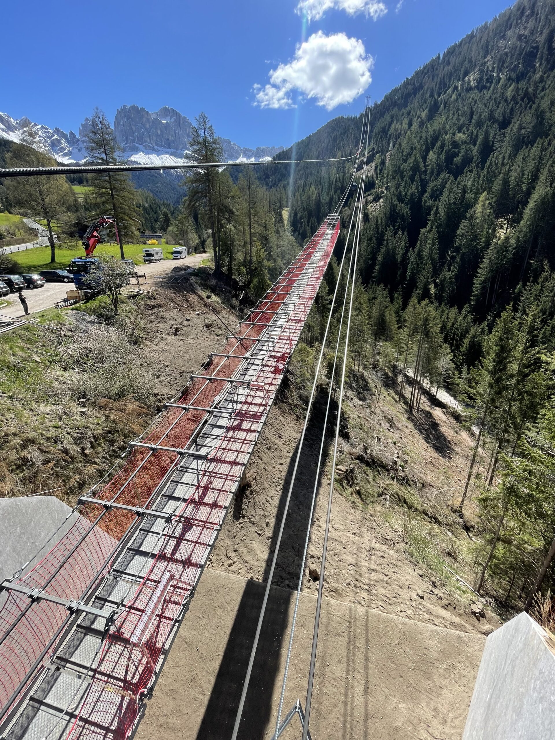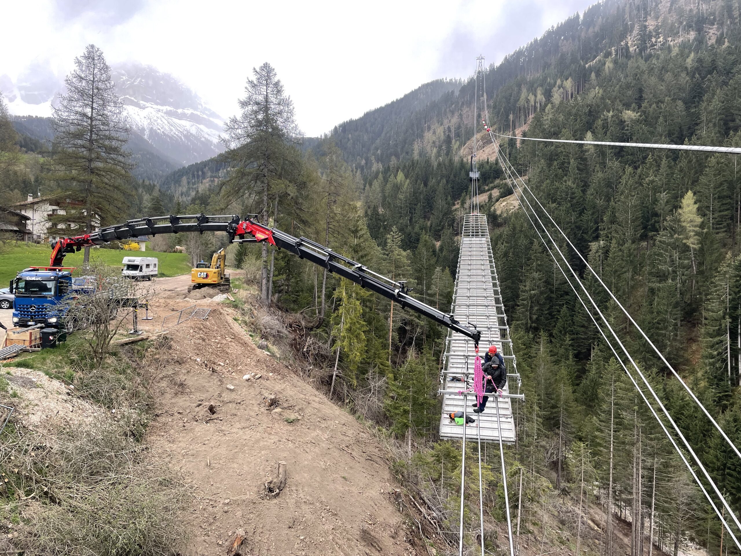 Passerella sospesa per esecuzione accorciamento fune traente funivia
